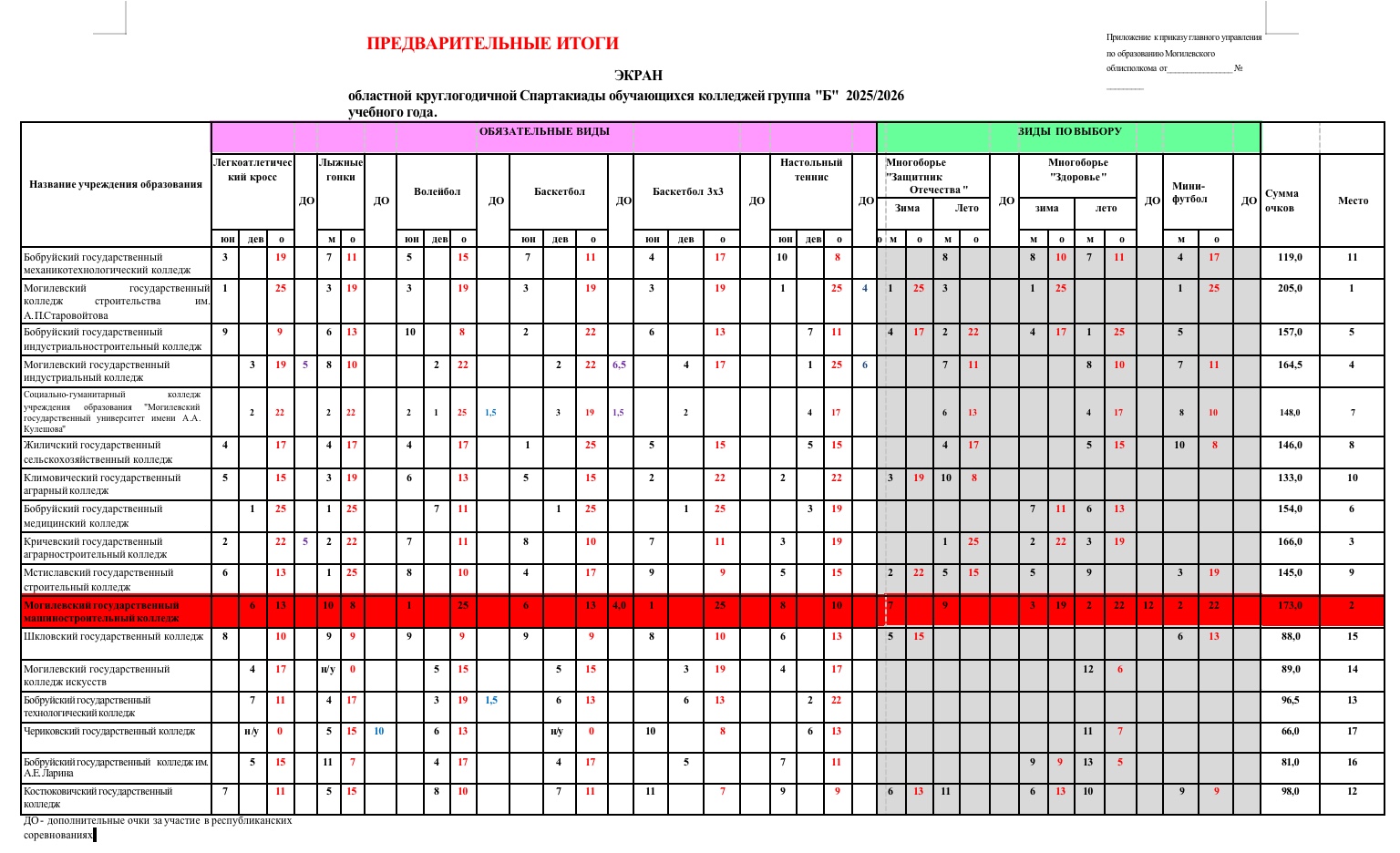 Добрый день коллеги, наш колледж по итогам прошедших соревнований областной круглогодичной Спартакиады обучающихся колледжей, занимает второе призовое место. Спасибо всем преподавателям и администрации, которые помогли добиться такого результата.